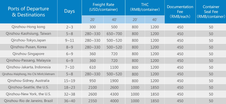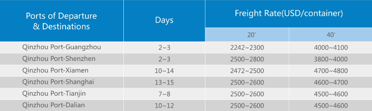 1.Average Tariff of Maritime transport Departing from Qinzhou Pot