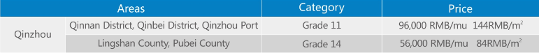 3.Minimum Transfer Rates of Land for Industrial Use in Qinzhou City