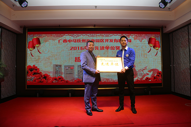 把酒當(dāng)歌歌盛世,聞雞起舞舞新春。告別難忘的2016,迎來全新的2017,回首3年奮斗路,展望中馬合資公司新前程。2017年1月13日,廣西中馬欽州產(chǎn)業(yè)園區(qū)開發(fā)有限公司召開2016年總結(jié)表彰大會暨2017年春節(jié)團(tuán)拜會,全體與會人員歡聚一堂,共慶佳節(jié),互致新年祝福。