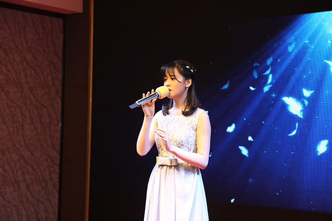 為了籌備此次團(tuán)拜會,公司各部門精心準(zhǔn)備了文藝節(jié)目,為與會人員呈現(xiàn)了精彩紛呈的文藝表演,并贏得陣陣掌聲。本次團(tuán)拜會還邀請到馬來西亞歌手陳永馨傾情獻(xiàn)唱,她帶來了她的成名曲《你不知道的事》及《愛只為你寫》、《The Prayer》等歌曲。她公主般的笑容、甜美的歌聲將現(xiàn)場氣氛推向了高潮。