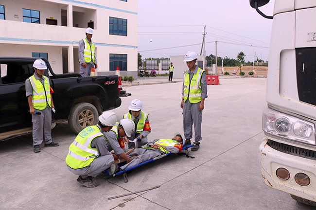 活動現(xiàn)場,孔雀灣混凝土公司分別進行了消防演練和交通事故救援演練,及時啟動相關(guān)應(yīng)急預(yù)案,完成了“事故”發(fā)生、信息上報、現(xiàn)場處置等10個環(huán)節(jié),演練達到預(yù)期效果。