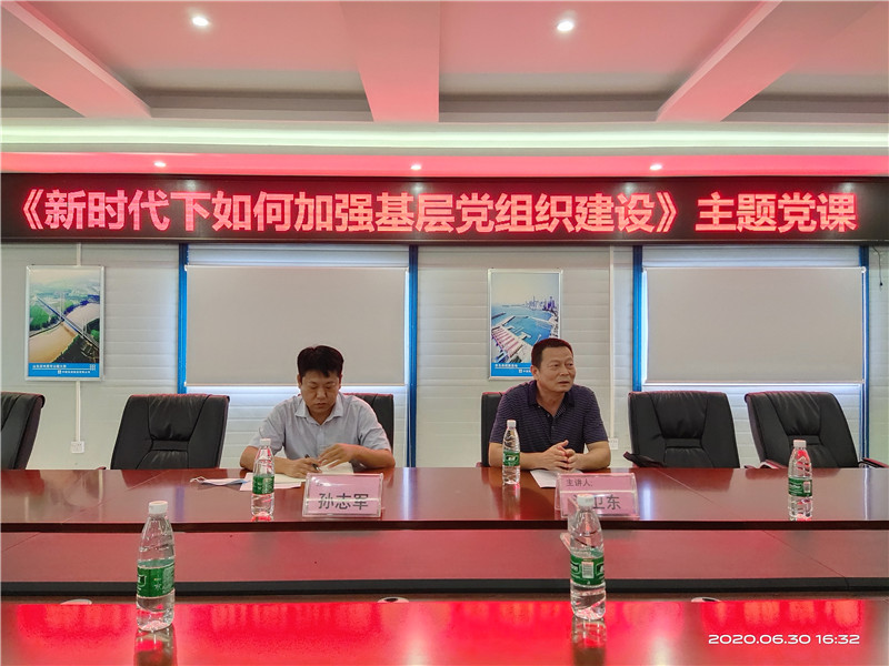 為紀(jì)念中國共產(chǎn)黨成立99周年,進(jìn)一步推進(jìn)黨支部標(biāo)準(zhǔn)化規(guī)范化建設(shè),2020年6月30日下午,合資公司黨支部與中共中建筑港集團(tuán)有限公司第九事業(yè)部欽州項(xiàng)目黨支部舉辦聯(lián)合黨課。中馬控股黨委涂衛(wèi)東同志以“新時(shí)代下如何做好基層黨建工作”為主題為全體黨員授課。