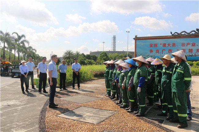 每到一處,中馬合資公司黨支部書記、工會(huì)主席為一線職工送上降溫解暑物品,并對(duì)他們不畏酷暑、愛崗敬業(yè)的奉獻(xiàn)精神表示感謝,叮囑他們?cè)诠ぷ髦幸⒁夥朗罱禍兀龊脛趧?dòng)防護(hù),確保安全生產(chǎn)。同時(shí)希望他們繼續(xù)做好日常園林養(yǎng)護(hù)、混凝土生產(chǎn)工作,為欽州港片區(qū)營造良好的人居和投資環(huán)境,助力欽州港片區(qū)高質(zhì)量發(fā)展。