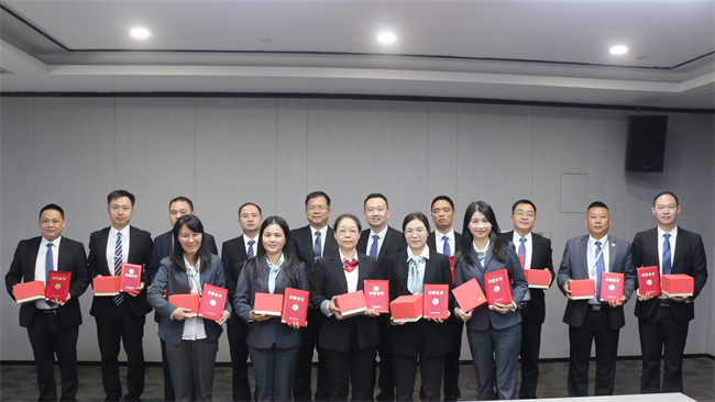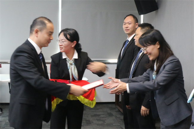 程繼武主持會(huì)議并宣讀了公司司齡滿十年的員工名單。與會(huì)人員還集中觀看了周年服務(wù)工作獎(jiǎng)員工的視頻。隨后,陳思進(jìn)、程繼武、江俊豪分別為司齡滿十年的員工頒發(fā)了“周年服務(wù)工作獎(jiǎng)”榮譽(yù)證書(shū)及紀(jì)念品。在座談交流環(huán)節(jié),與會(huì)員工暢所欲言,積極分享個(gè)人成長(zhǎng)經(jīng)歷與感悟,共同展望公司未來(lái)發(fā)展藍(lán)圖。