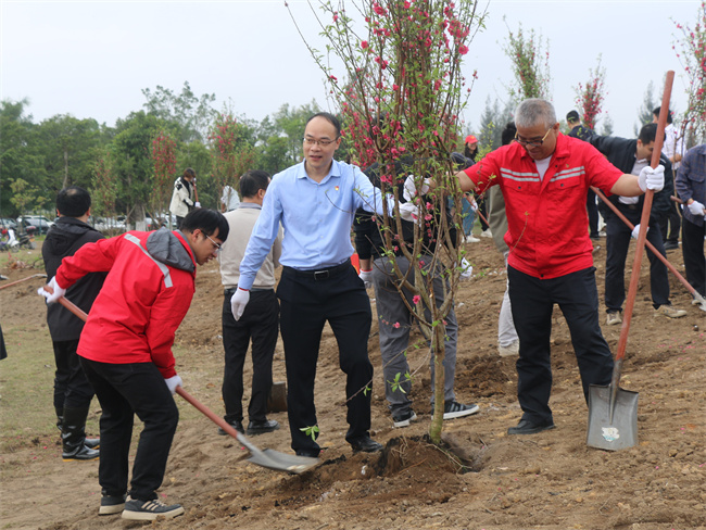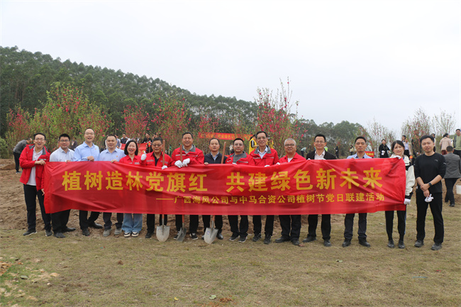 為深入貫徹習(xí)近平生態(tài)文明思想,踐行“綠水青山就是金山銀山”的理念,2025年3月12日,廣西中馬欽州產(chǎn)業(yè)園區(qū)開發(fā)有限公司黨支部(下稱中馬合資公司黨支部)與廣西海風(fēng)清潔能源有限公司黨支部(下稱廣西海風(fēng)公司黨支部)在園區(qū)孔雀灣公園聯(lián)合開展“植樹造林黨旗紅,共建綠色新未來”義務(wù)植樹主題黨日活動。中馬合資公司黨支部書記程繼武、廣西海風(fēng)公司黨支部書記林山及黨員代表20余人參加活動。