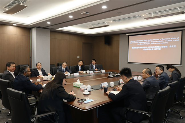 陳思進(jìn)總裁代表公司對悟倪·桑卡爾的到來表示熱烈歡迎,并簡要介紹了中馬欽州產(chǎn)業(yè)園區(qū)的開發(fā)建設(shè)歷程、中馬合資公司業(yè)務(wù)經(jīng)營發(fā)展有關(guān)情況。他表示,中馬合資公司作為中馬欽州產(chǎn)業(yè)園區(qū)的總體開發(fā)建設(shè)及運(yùn)營主體,歷經(jīng)十多年的開發(fā)建設(shè),園區(qū)基礎(chǔ)設(shè)施建設(shè)不斷完善。當(dāng)前公司正處于多元化發(fā)展的關(guān)鍵期,希望悟倪·桑卡爾在業(yè)務(wù)拓展、國際貿(mào)易合作等方面給予指導(dǎo),推動公司在多元化發(fā)展的道路上行穩(wěn)致遠(yuǎn),為深化中馬兩國經(jīng)貿(mào)合作、實(shí)現(xiàn)互利共贏注入新的活力與智慧。