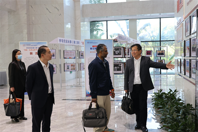 會前,悟倪·桑卡爾實(shí)地參觀了中馬文化長廊圖片展。