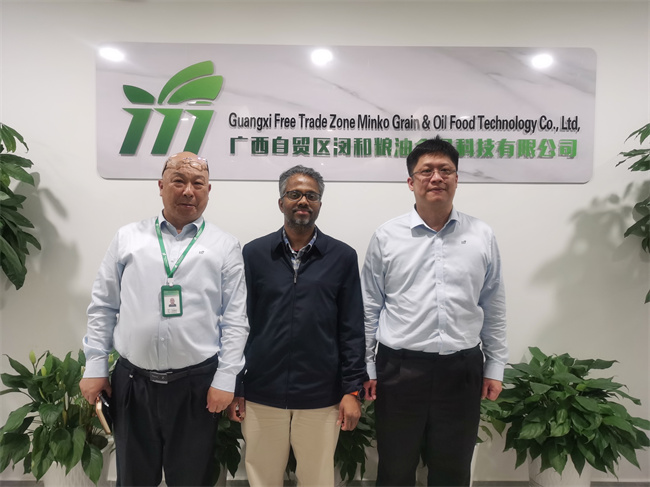悟倪·桑卡爾(中)與廣西閔和糧油食品科技有限公司有關(guān)人員合影留念