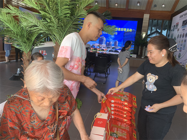 工作人員為業(yè)主送上節(jié)日禮品