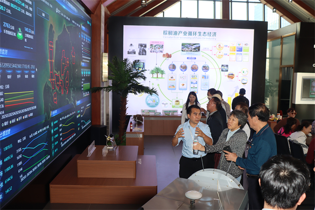 退休老同志們現(xiàn)場觀看棕櫚種植與棕櫚油生產(chǎn)加工主題宣傳視頻,聽取中國—東盟(綠色棕櫚產(chǎn)業(yè))人工智能創(chuàng)新合作平臺的建設(shè)進(jìn)展,了解棕櫚油產(chǎn)業(yè)循環(huán)生態(tài)經(jīng)濟(jì)模式,參觀特色商品展示展銷區(qū)。他們對綠色棕櫚人工智能產(chǎn)業(yè)融合、棕櫚油產(chǎn)業(yè)循環(huán)生態(tài)系統(tǒng)、人工智能跨境合作產(chǎn)生了濃厚的興趣,圍繞產(chǎn)業(yè)技術(shù)應(yīng)用、跨境合作模式等話題,與公司工作人員展開深入交流探討,并紛紛表示持續(xù)關(guān)注綠色棕櫚人工智能產(chǎn)業(yè)融合發(fā)展和中馬欽州產(chǎn)業(yè)園區(qū)建設(shè),繼續(xù)發(fā)揮自身積累的經(jīng)驗(yàn)優(yōu)勢,為區(qū)域產(chǎn)業(yè)高質(zhì)量發(fā)展發(fā)光發(fā)熱。